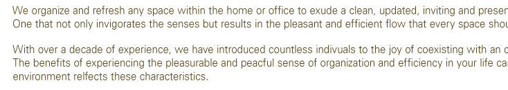 Make your home or office a more efficient, organized, and pleasant environment. Contact Us Today!